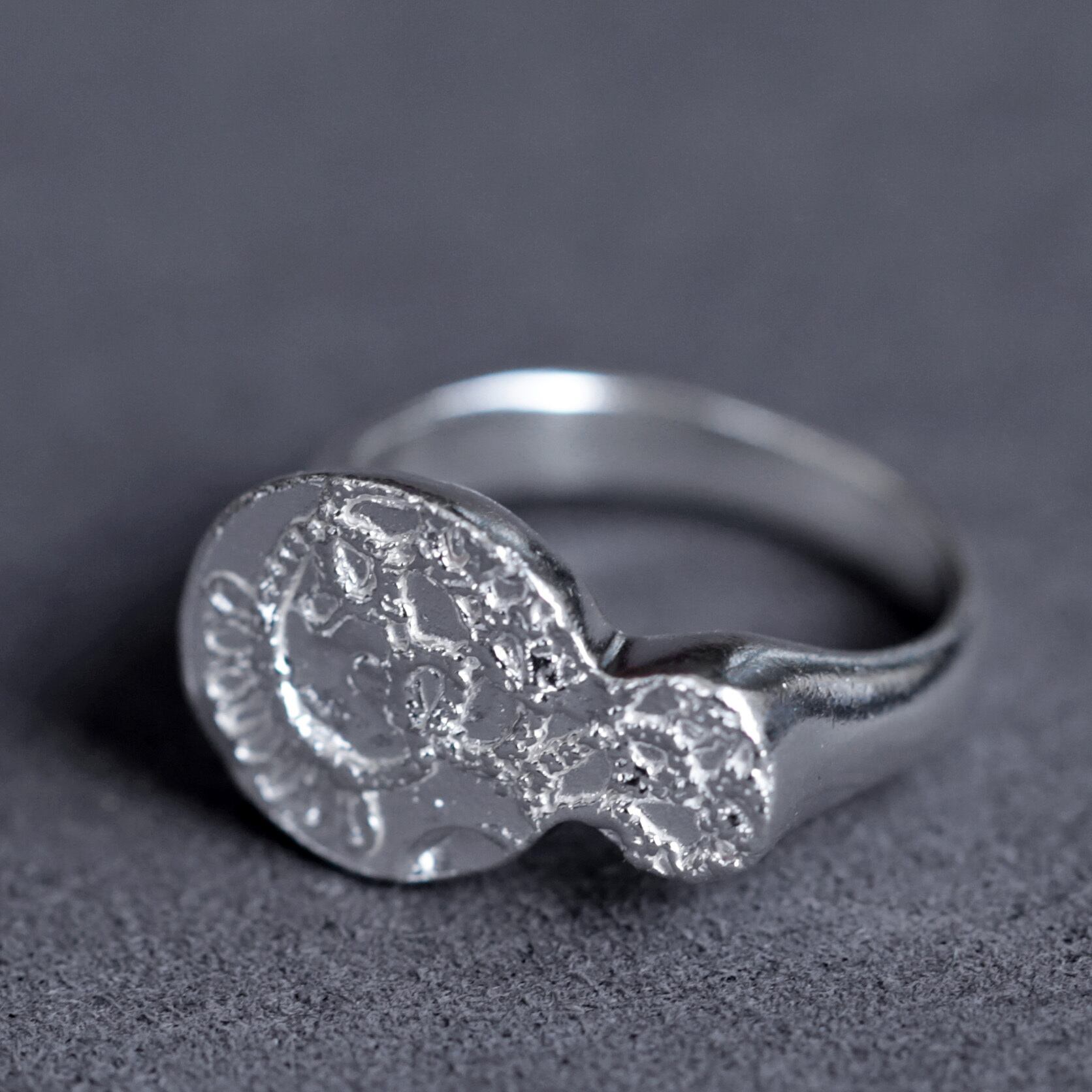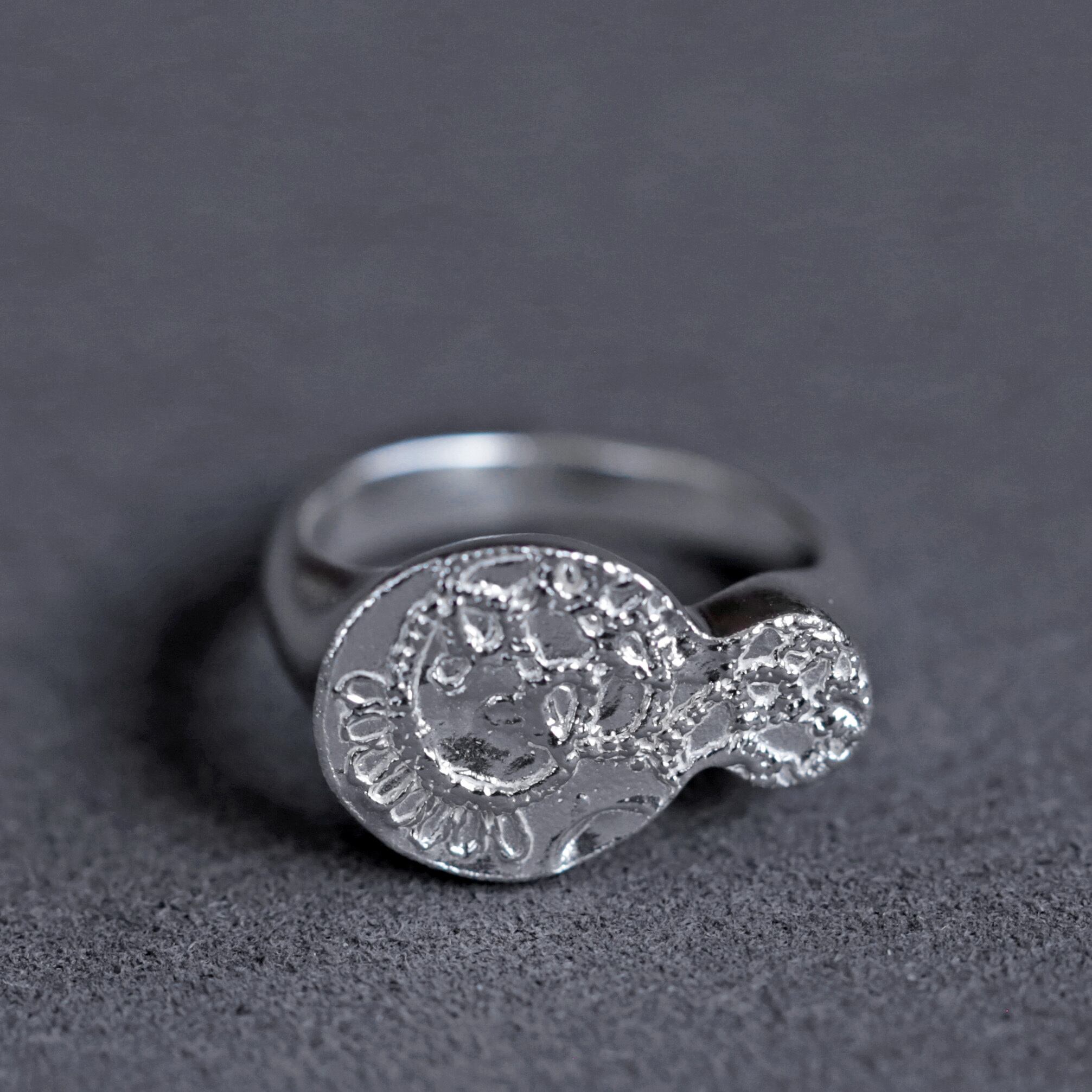 レース模様が繊細で美しい印台リングです。
