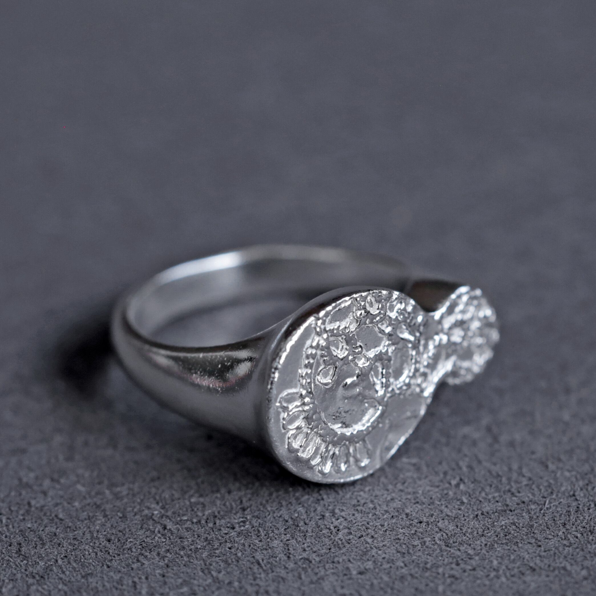 大小の丸をデザインした印台リング。