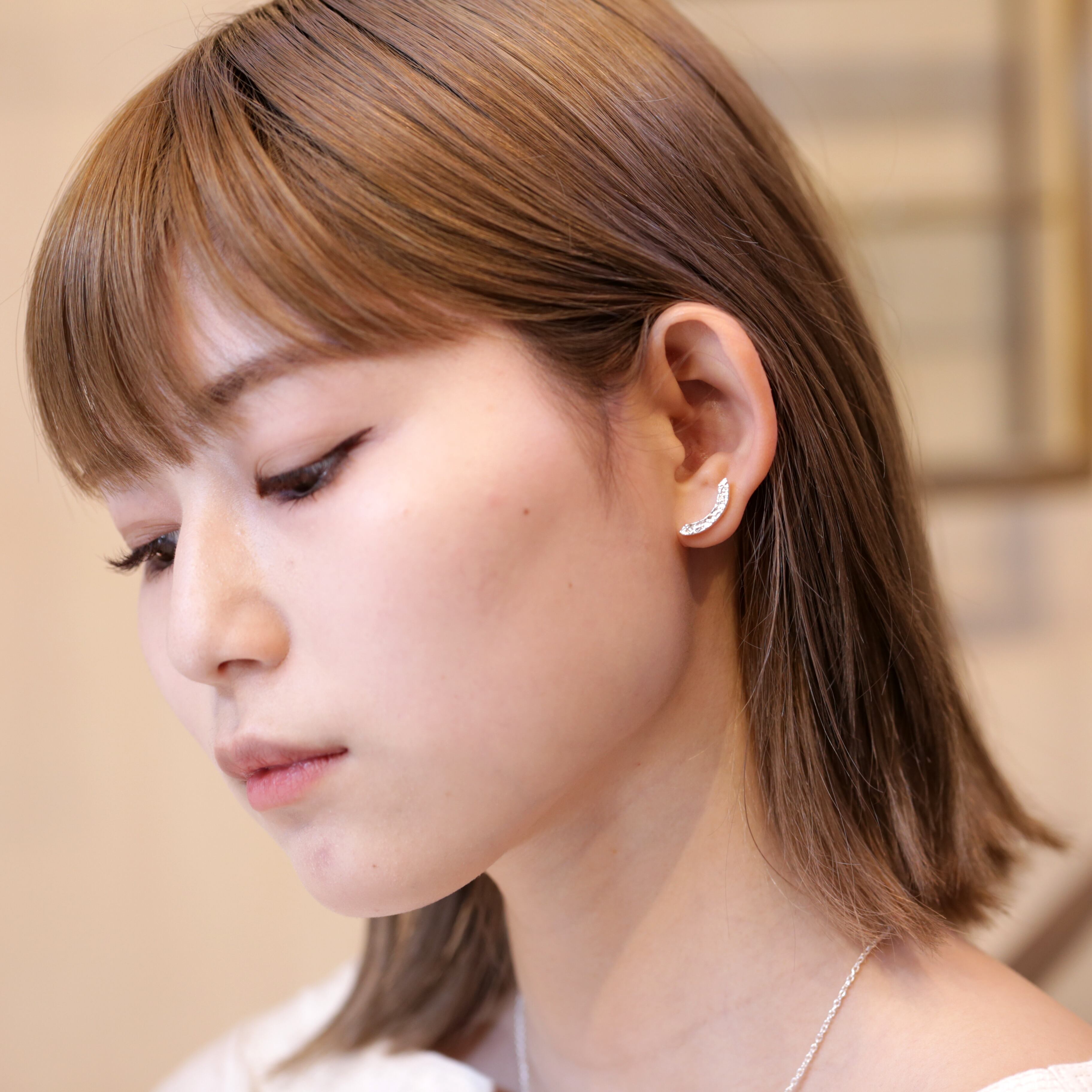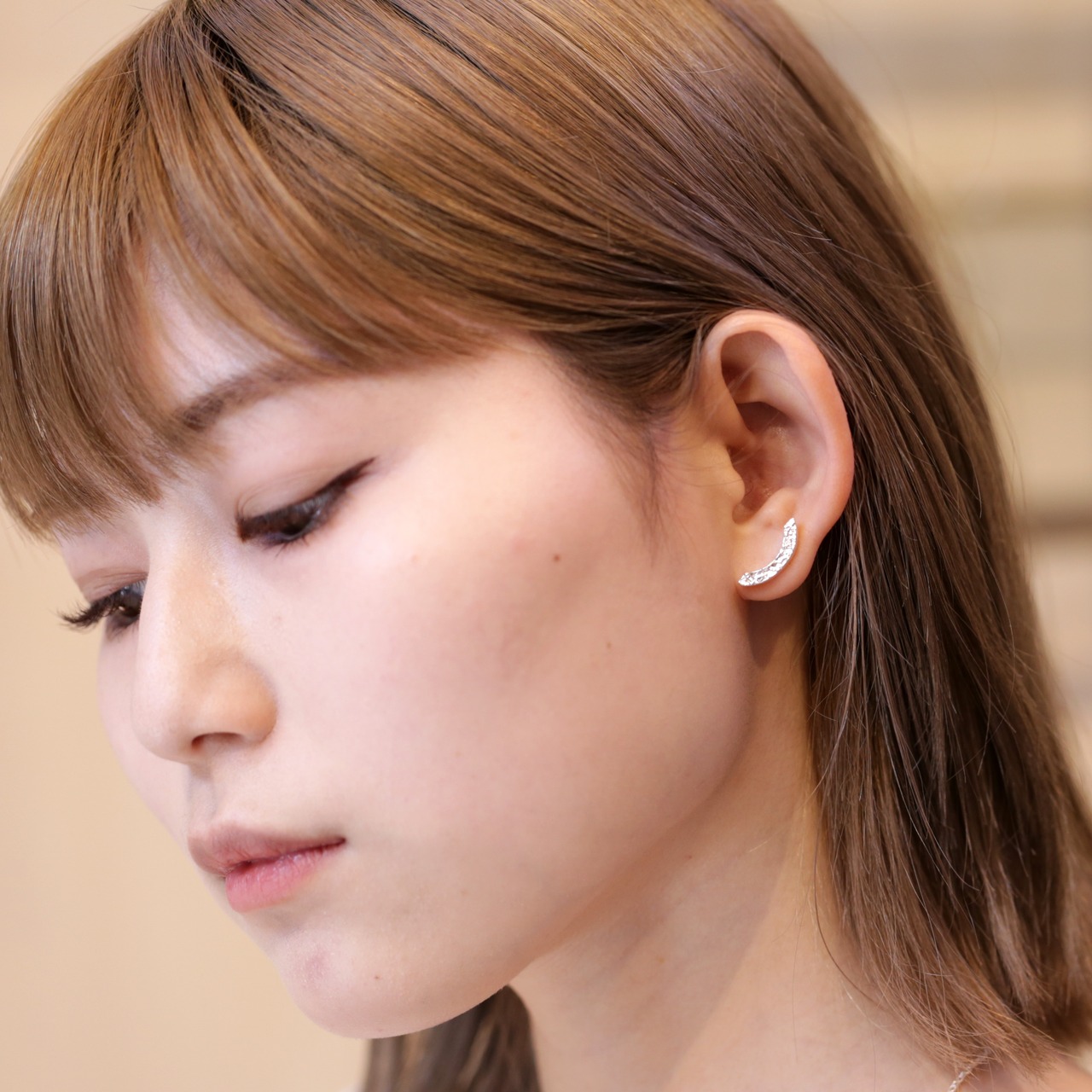 耳に沿うようにも着けられる遊び心のあるピアス。