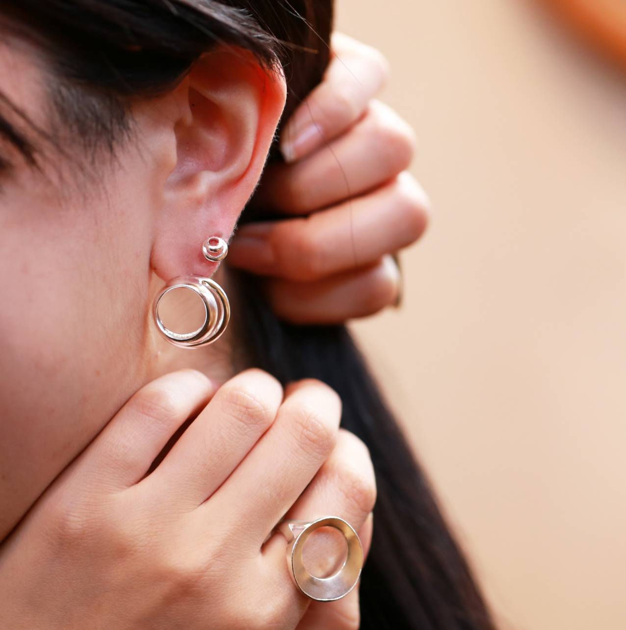 一見月モチーフとは気づかない、モードでモダンな印象の大人の月のアクセサリー。